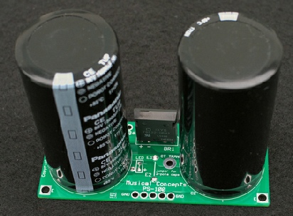 Alternative: Check out our PS-500V2B and PS-500M. You can construct a totally dual-mono power supply with our twin stacked toroid power transformer(TP-500). PS-500V2B has 88,000uF while the ‘M’ version has 120,000uF (8 exotic caps in CRC mode). The TP-500 can be easily installed with our PS-500V2B and PS-500M power supply boards on this page. That sounds massive and expensive doesn't it! You've seen far smaller power supplies in $10,000 amplifiers haven't you! That puts a different light on it we think. See below!