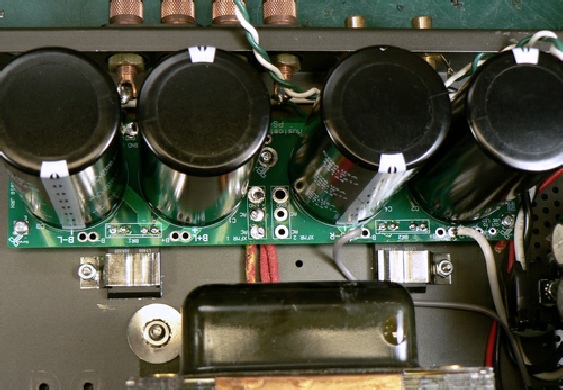 The DH-500 with original caps provides 40,000uF total capacitance. That’s not bad, but that is an aging, tired power supply. It is also a ‘stereo’ not ‘dual-mono’ power supply hence the peak and minimum power demands makes one channel affect the voltage/current available to the other channel. This can affect the sense of imaging and focus of instruments on the sound stage. Another notable effect is that the amp will seem less powerful because as high power demands rise it can make the amp seem a bit more muddled and less precise/relaxed.