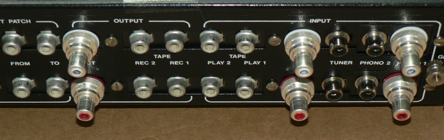 WE’RE NOT TRYING TO RECYCLE AN OLDIE HERE........ but this wonderful modified Hafler DH-101 recently pulled in for a pit stop. The customer was so delighted with the results of the first modification that he wondered if we could make it sound even better. We thought so and we built a completely new outboard power supply with a higher voltage toroid transformer and a pair of Jensen 10,000uF capacitors, the super transparent Cree SiC rectifiers and an additional Pi filter section. We changed the internals of the preamp somewhat by adding new bypass caps in key spots, reconfiguring the RIAA circuit and replacing the phono input cap with an even more transparent part. Now due to the original grounding and switch assembly the Hafler DH-101 is not known as having the best channel separation and noise figures on the planet. We attacked that by completely disconnecting all the pushbutton switches and then installing our Chameleon preamp selector switch, then completely rewiring the inputs with twisted ground shields. The noise vanished and not a trace of crosstalk can be heard at all. We also use the great CMC silver RCA jacks as you can see below, plus we left some of the already good sounding Deltron RCAs from the last modification.